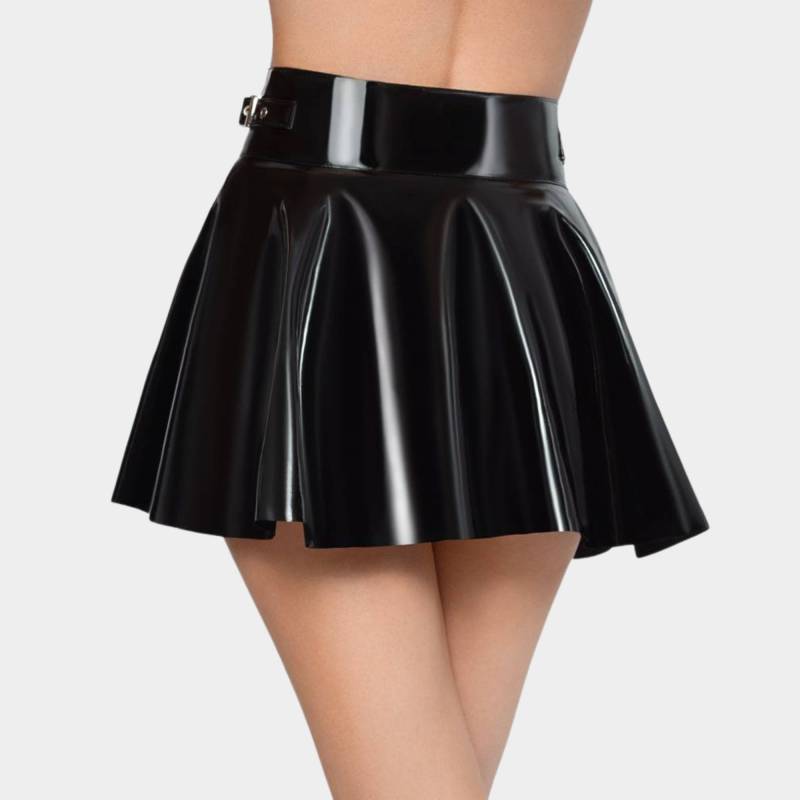 Perfekt geeignet für besondere Anlässe oder einen Abend in der Stadt, ist dieser ausgestellte Vinylrock eine unverzichtbare Wahl für alle, die auf der Suche nach einem raffinierten Fetisch-Look sind.