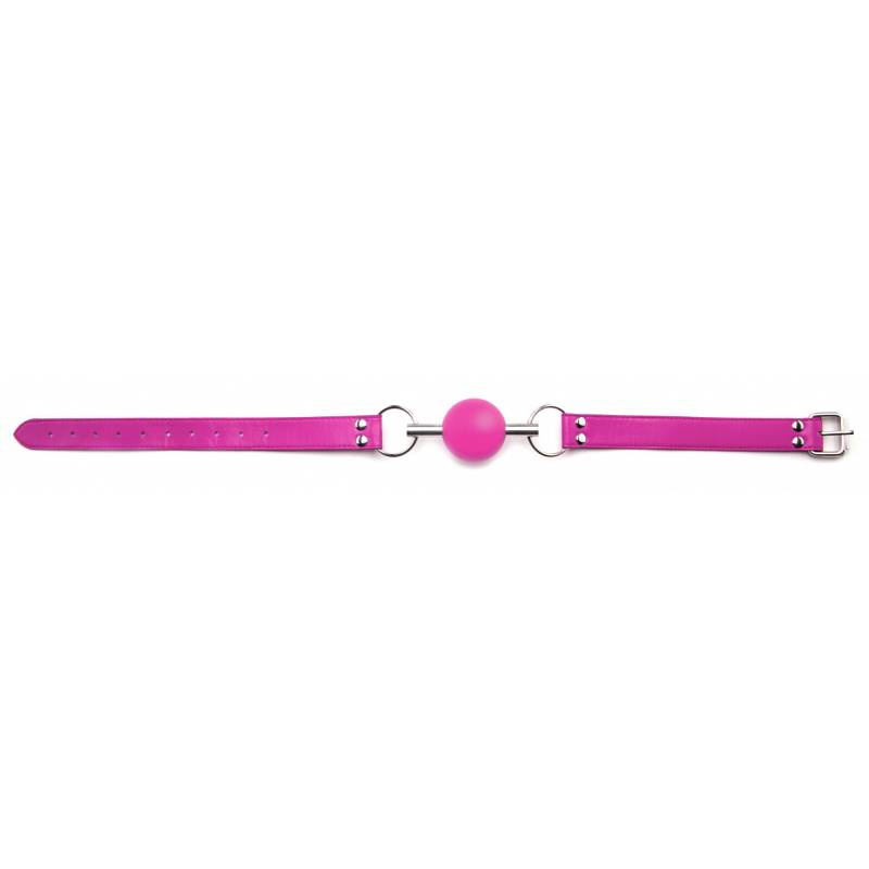 Rosafarbener Ballbabyball aus weichem Silikon mit verstellbaren Riemen. Bequem und elegant, perfekt für fesselnde BDSM-Sessions mit einer Mischung aus Unterwerfung und Phantasie.