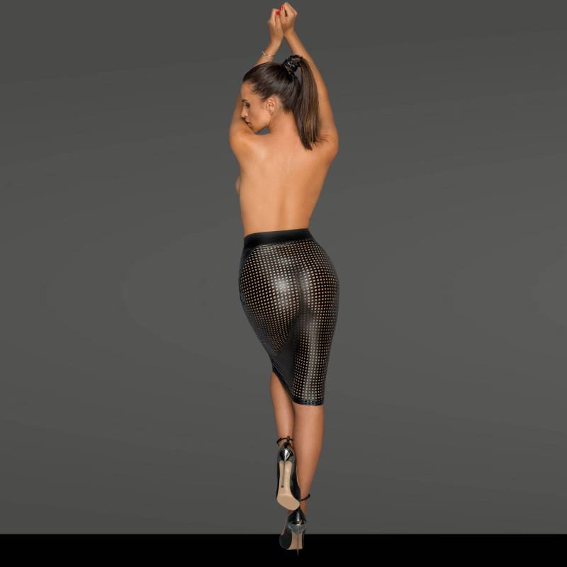 Das durchbrochene Design mit Laserschnitt verleiht diesem Bleistiftrock eine zusätzliche Dimension. Die lasergeschnittenen Muster erzeugen faszinierende und sinnliche Motive und verleihen dem Rock eine einzigartige und raffinierte Ästhetik. Diese Kombination aus Eleganz und Verführung macht diesen Rock zur perfekten Wahl für besondere Anlässe oder um Ihrer Alltagsgarderobe einen Hauch von Erotik zu verleihen.