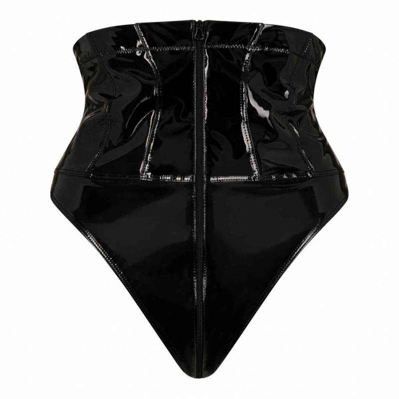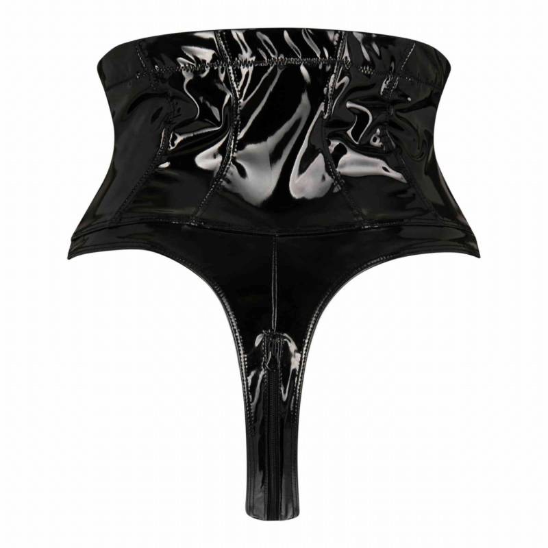 Diese Strings sind der Inbegriff des Fetischstils und verbinden einen sexy und provokanten Look mit einem praktischen und bequemen Design. Die hohe Taille betont die weiblichen Kurven, während das schwarze Vinyl für einen Hauch von Raffinesse und Geheimnis sorgt.