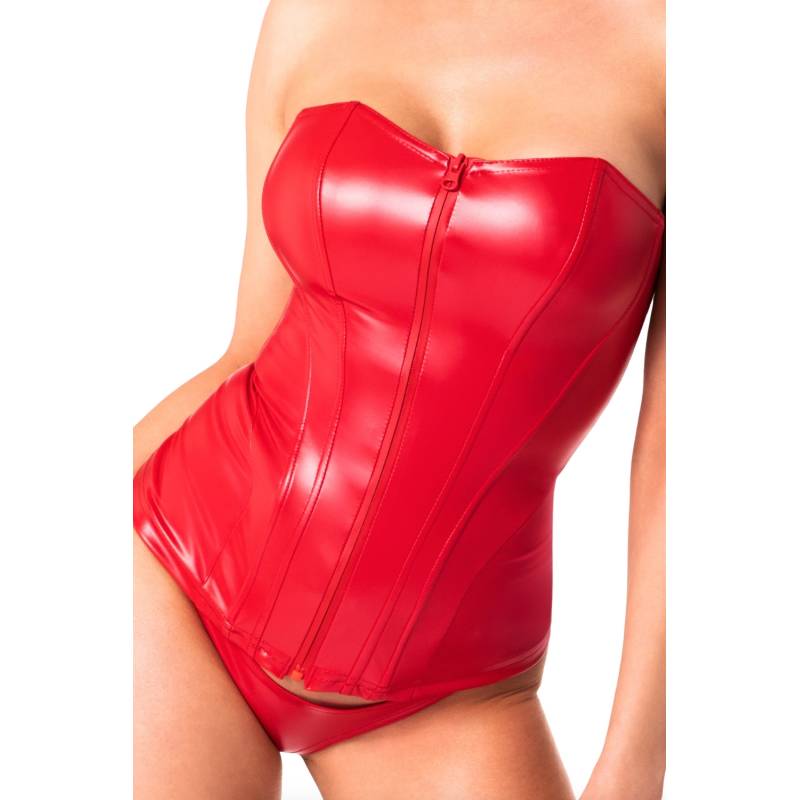 Schieben Sie Ihren Körper in dieses rote Wetlook-Bustier mit Reißverschluss und spüren Sie die Macht, die von jedem Zentimeter Ihrer umhüllten Haut ausgeht. Es wurde entworfen, um Ihre Formen kompromisslos zu umarmen, und wird zu einer echten Verlängerung Ihrer Haltung: katzenhaft, selbstbewusst, unerreichbar.