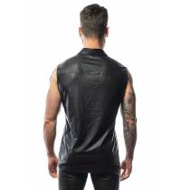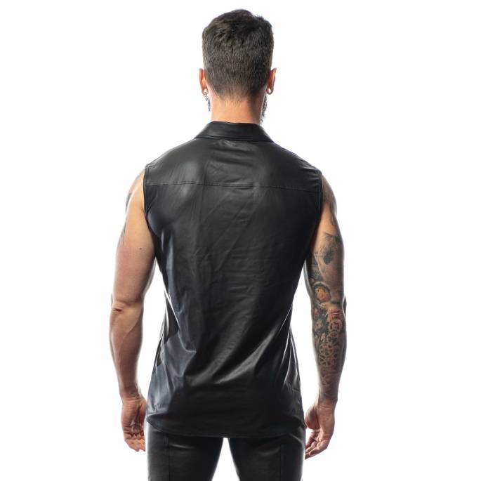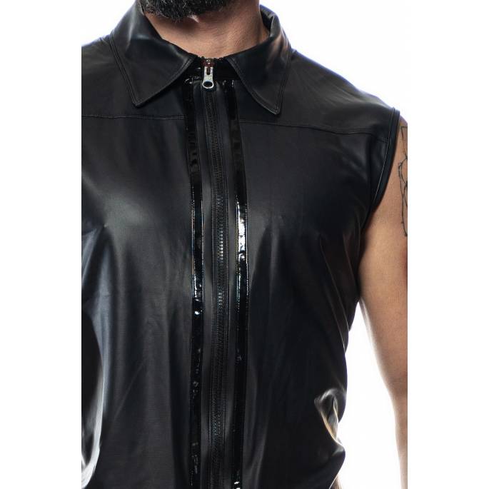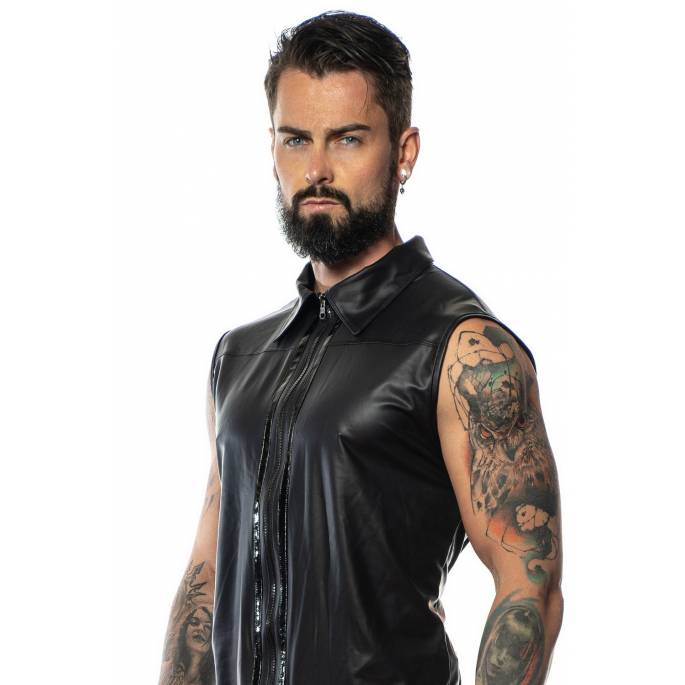 Eng anliegendes, ärmelloses Wetlookhemd mit Kragen.