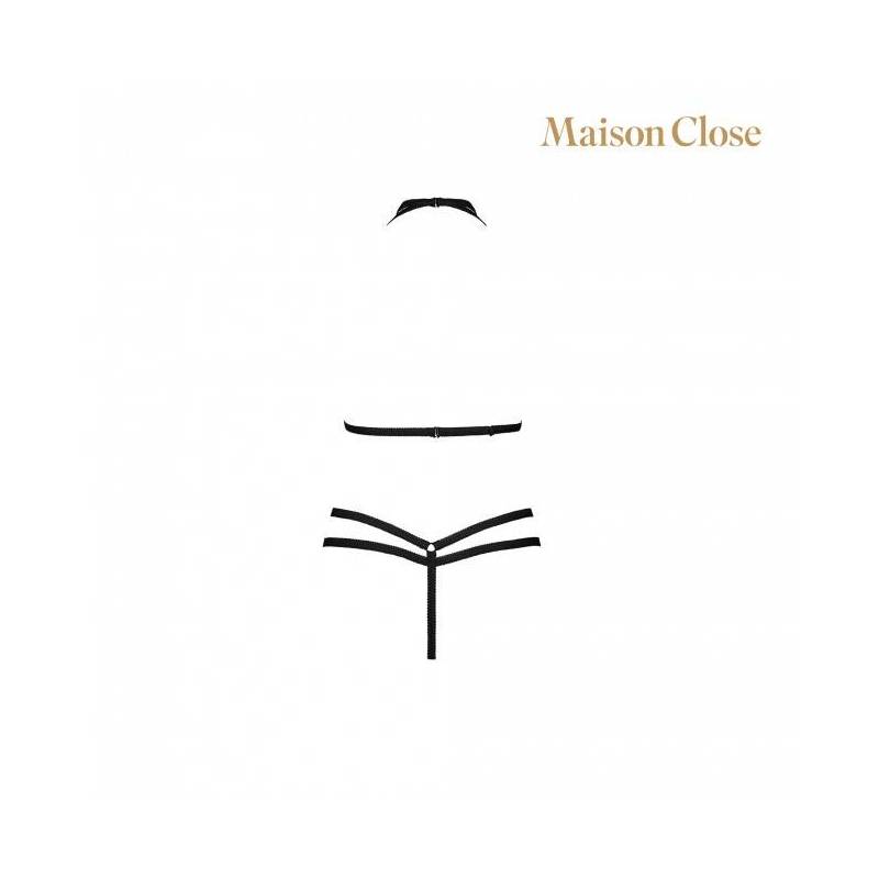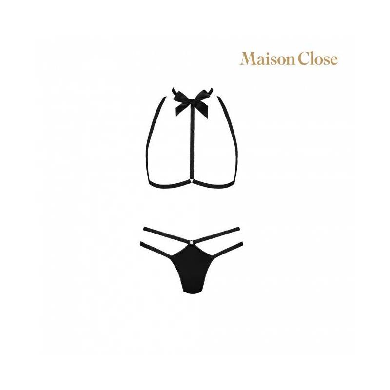 Le Petit Secret Set von MAISON CLOSE, bestehend aus einem Geschirr mit abnehmbarer Schleife und einem Riemen-String.