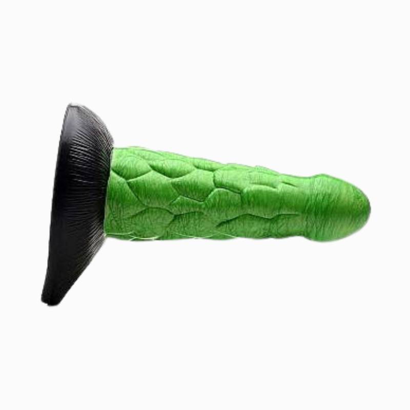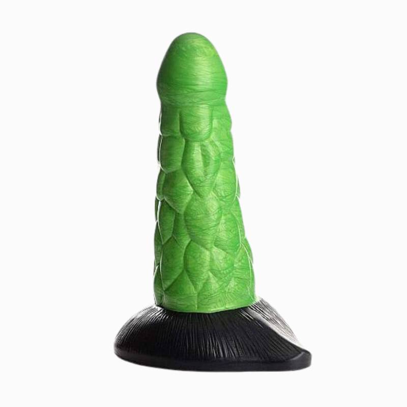 Dieser Dildo in Form eines radioaktiven Reptils bietet eine dicke, schuppige Textur. Seine metallisch-grüne Farbe und die schwarze Basis schaffen die perfekte Atmosphäre für Fantasy-Rollenspielszenarien, in denen Drachen, Reptilien oder Krokodile eine Rolle spielen. Seine breite Basis mit Flansch ist geschirrkompatibel, sodass Sie ihn an einem Gurt mit Gurten befestigen können, während seine Saugnapfbasis eine freihändige Verwendung ermöglicht. Achten Sie darauf, dass Sie nur ein Gleitmittel auf Wasserbasis verwenden. Es wird aus hochwertigem Silikon hergestellt, ist körperfreundlich und enthält keine Phthalate.