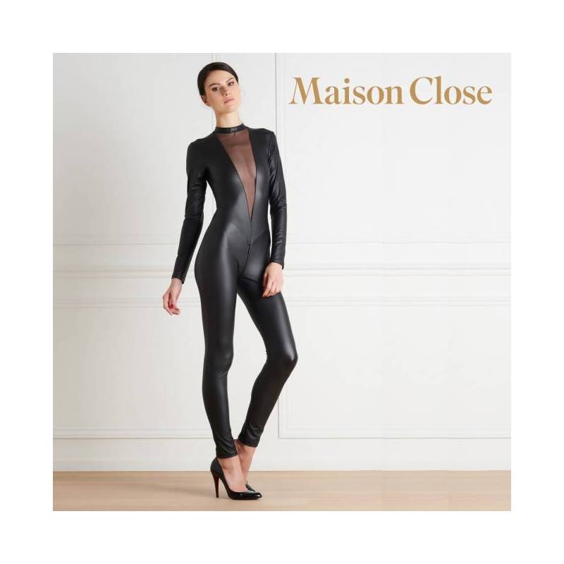 Catsuit in Lederoptik mit Schleier mit Ring am Hals von der Marke MAISON CLOSE
