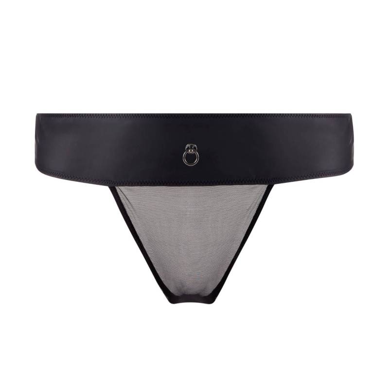 Ohne Baumwollfutter besteht er aus einem breiten Stirnband in Lederoptik und einem feinen schwarzen Schleier für den Intimbereich und bietet so einen sinnlichen und eleganten Look. Außerdem ist es mit einem anthrazitgrauen Schmuckring verziert, der für den letzten Schliff an Raffinesse sorgt.