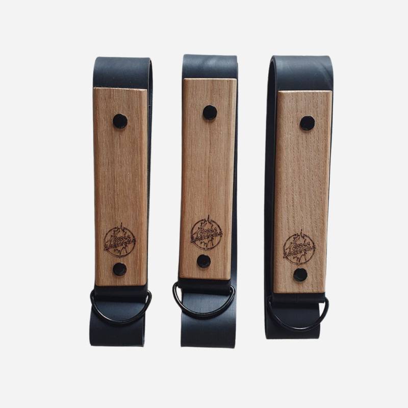 Der aus recyceltem Gummi hergestellte Gurt dieses Frapett ist weich, aber robust und sorgt für eine klare und präzise Markierung. Der Griff aus Mahagoniholz, in den das Logo von Fessée Artisanale eingraviert ist, sorgt für einen optimalen Halt in der Hand. Die schwarze Aufhängeöse ermöglicht eine praktische Aufbewahrung.