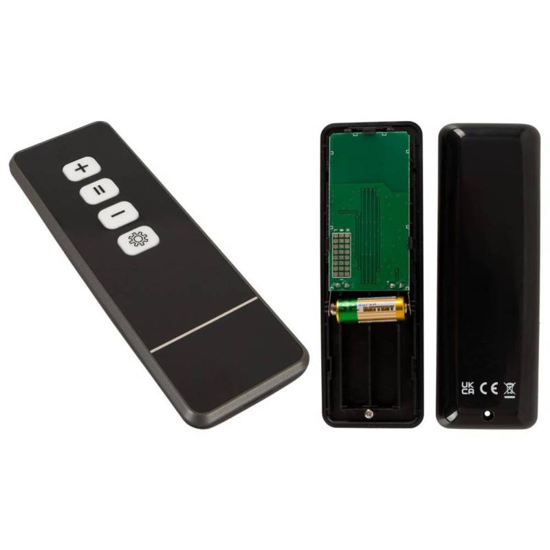 Mit der mitgelieferten Fernbedienung kann das Schiebevergnügen auf einer Hublänge von 4,5 cm bequem per Knopfdruck gesteuert werden.