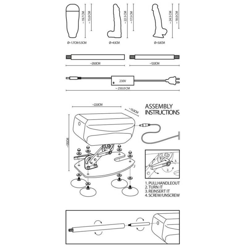 Sexmaschine im kompakten Format, mit 2 Dildos und 1 Masturbator inklusive, für abwechslungsreiche und endlose sexuelle Freuden.