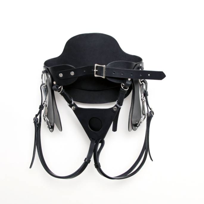Das schwarze Ledergurtzeug ist außerdem mit 9-fach verstellbaren Hüftgurten ausgestattet, die sich perfekt an Ihre Körperform anpassen lassen. So können Sie sich auf Ihr Vergnügen konzentrieren, ohne sich um den Komfort des Zubehörs sorgen zu müssen.