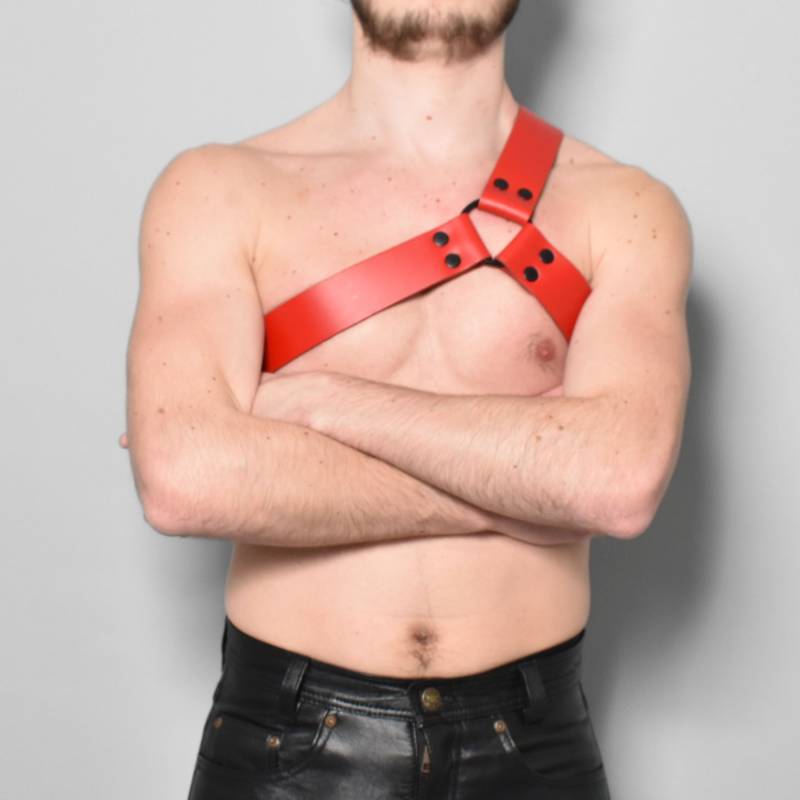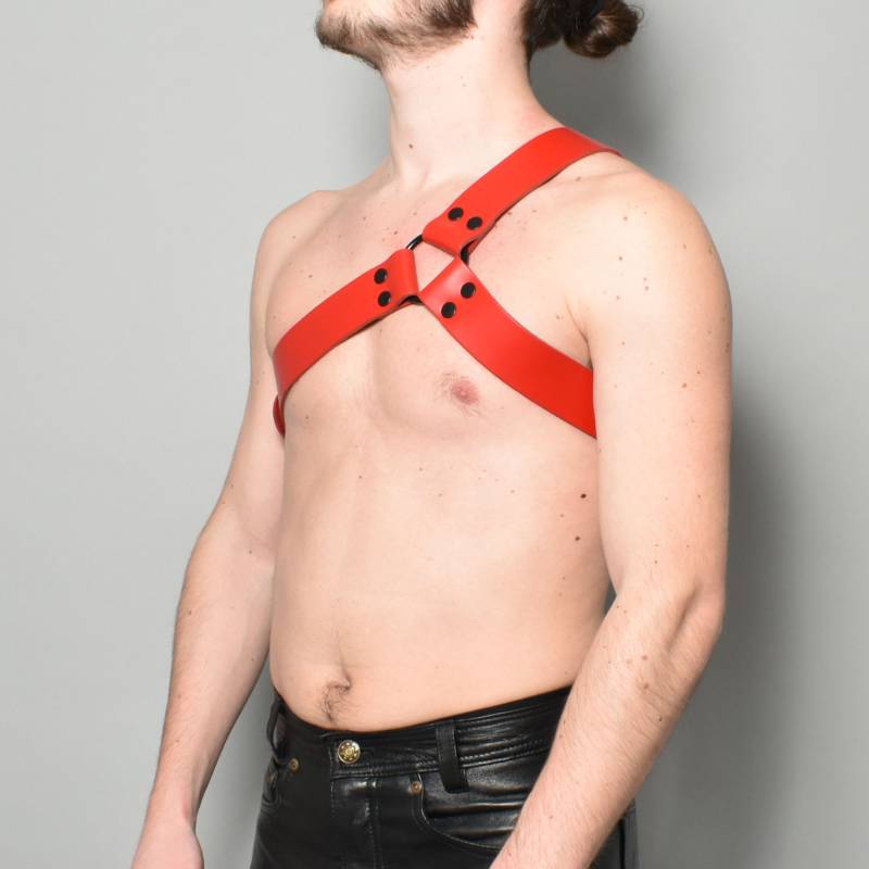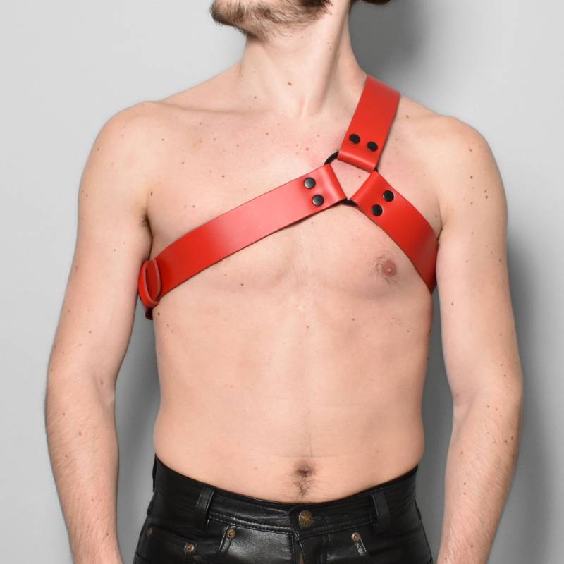 Dieser robuste und stabile BDSM Brustgurt in Y-Form ist aus erstklassigem rotem Leder gefertigt und mit großen schwarzen Ringen, einer Schnalle, doppelten Nieten und einer absolut hochwertigen Verarbeitung verziert. Er wird zu einem Must-have, das Sie nie mehr ablegen werden.