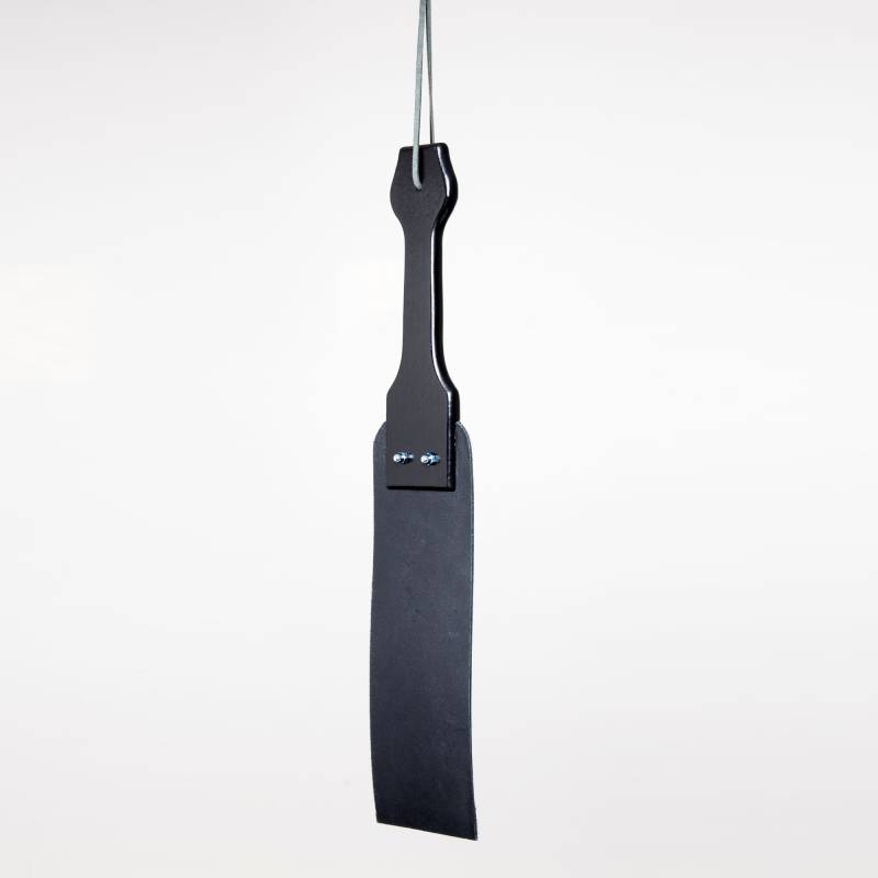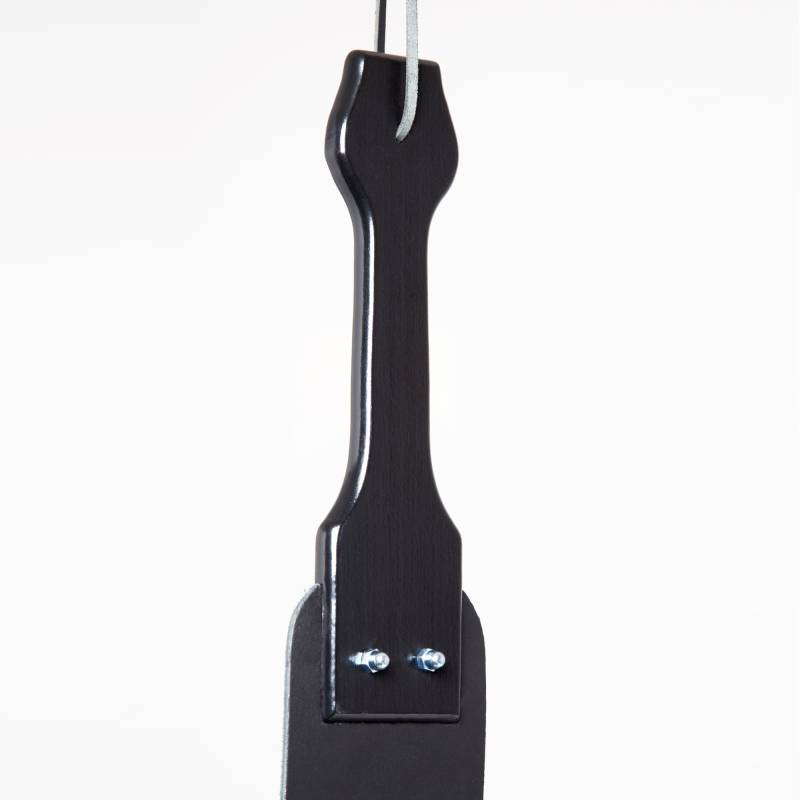 Dieses hat einen dicken, stabilen Griff aus schwarzem Holz, an dem ein weiches, aber dickes Lederstück befestigt ist, das für ein effektives Klappern sorgt. Das Lederstück ist außerdem breit und lang genug, um eine Intensität von mäßig bis sehr stark zu ermöglichen.
