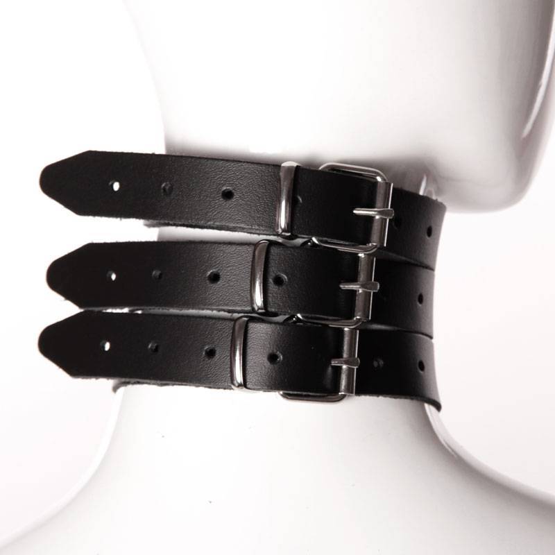 Tragen Sie diese hübsche Lederhalskette mit 3 Streifen , die mit ihrer vorderen Schnalle sehr glamourös wirkt.