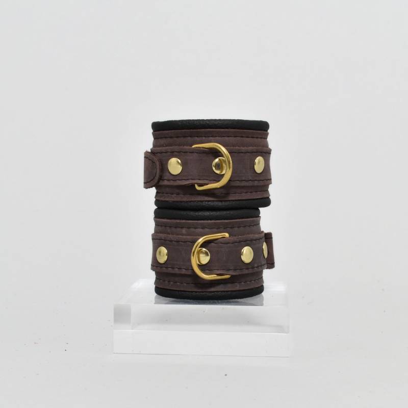 Tauchen Sie mit unserem Paar Handschellen aus braunem Leder in eine Welt intensiver Empfindungen ein.