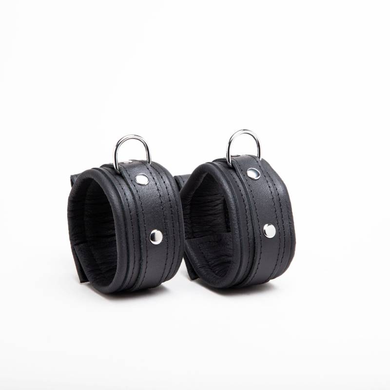 Erlauben Sie sich ein wenig Komfort bei Ihren BDSM-Spielen mit diesen wattierten Fußknöcheln.Dèmonia-Kollektion Schwarzes Leder "Auf" genieteten Riemen und Metallring Innen mit Fleece gefüttert 12 Einstellmöglichkeiten