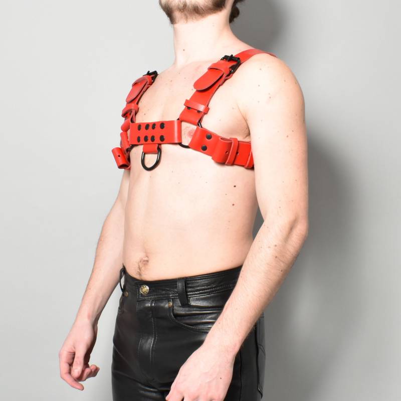 Dieses starke und robuste Brustgeschirr ist aus hochwertigem Leder gefertigt und in Kombination mit den großen schwarzen Ringen, Schnallen, doppelseitigen Nieten und der absolut hochwertigen Verarbeitung wird es zum ultimativen "Must Have", das Sie nie wieder ablegen werden. Wickeln Sie die breiten, 4 cm breiten und 3 mm dicken Gurte um Ihre Brust und tragen Sie das Geschirr zu jedem Anlass, der Ihnen gefällt.