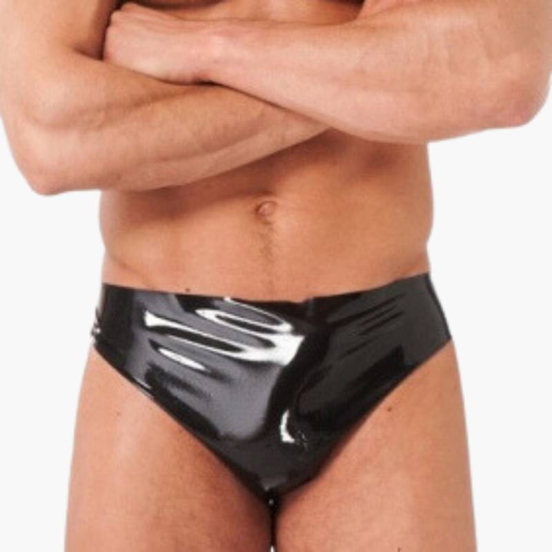 Schwarzer Latex-Slip für Männer.
