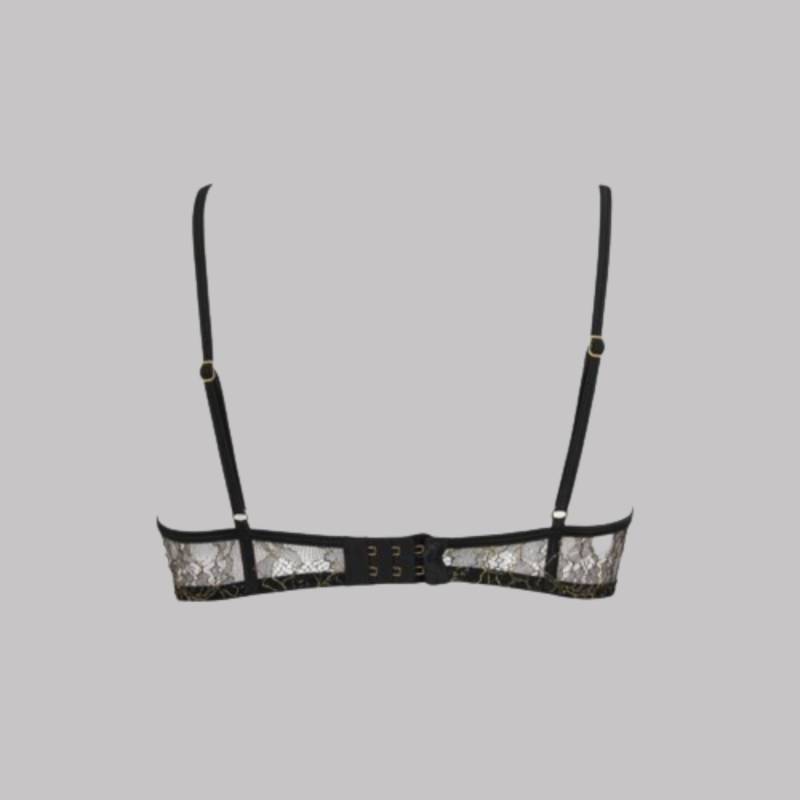 Korb-BH aus schwarzer und goldener Spitze "Le jardin impérial" von Maison Close.