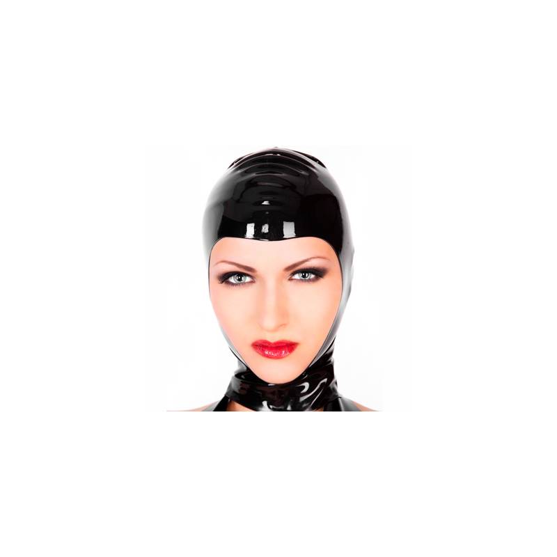 Schwarze Sturmhaube aus Latex (0,4 mm) mit weit geöffneter Gesichtspartie, die dem Kopf einen vollwertigen Fetisch-Look verleiht. Die abgerundete Öffnung umschließt Ihr Gesicht angenehm, und am Kinn ist ein Rücksprung vorgesehen, so dass Sie Ihren Hals vollständig bedecken können.