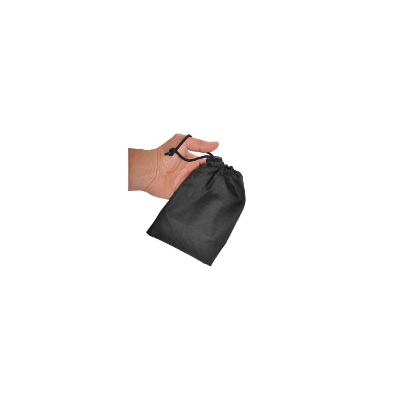 Kleiner Beutel aus dickem schwarzem Stoff mit einer Kordel zum Verschließen.