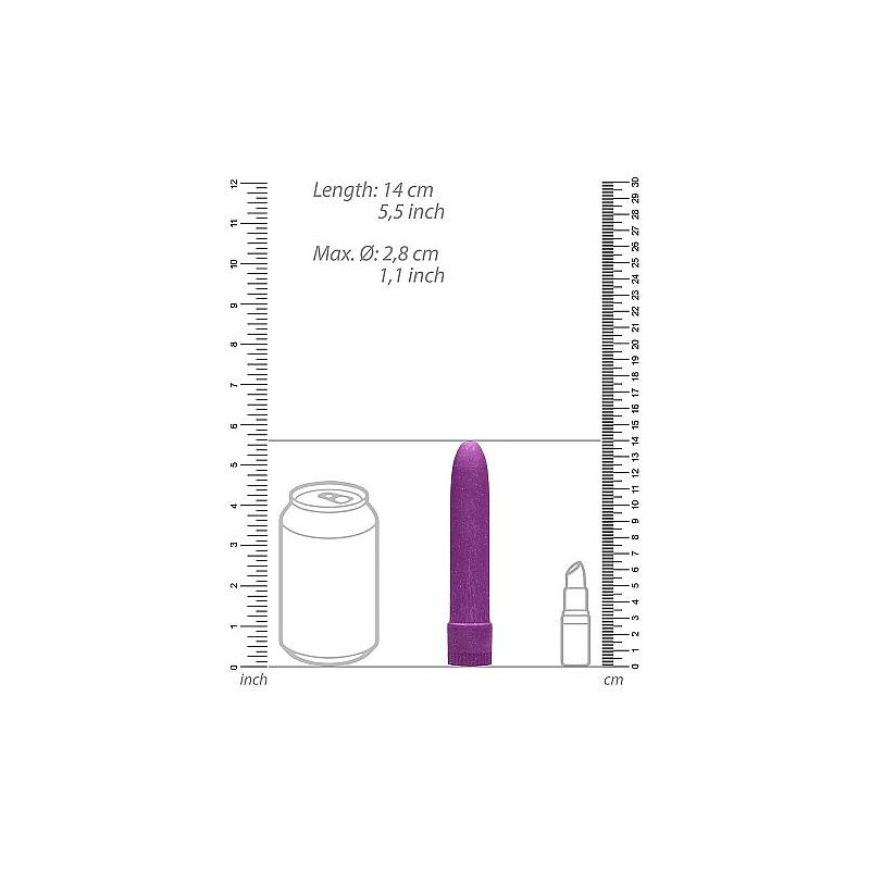 Das Spielzeug hat eine Gesamtlänge von 14 cm (5,5"), eine einsetzbare Länge von 11 cm (4,4") mit einem Durchmesser von 2,8 cm (1,1").
