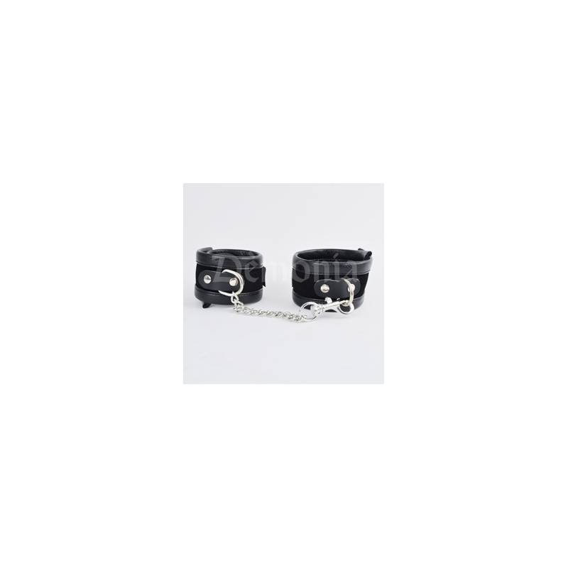 Eine 10 cm lange Kette verbindet die beiden Fußknöchel mit einem Karabinerhaken.