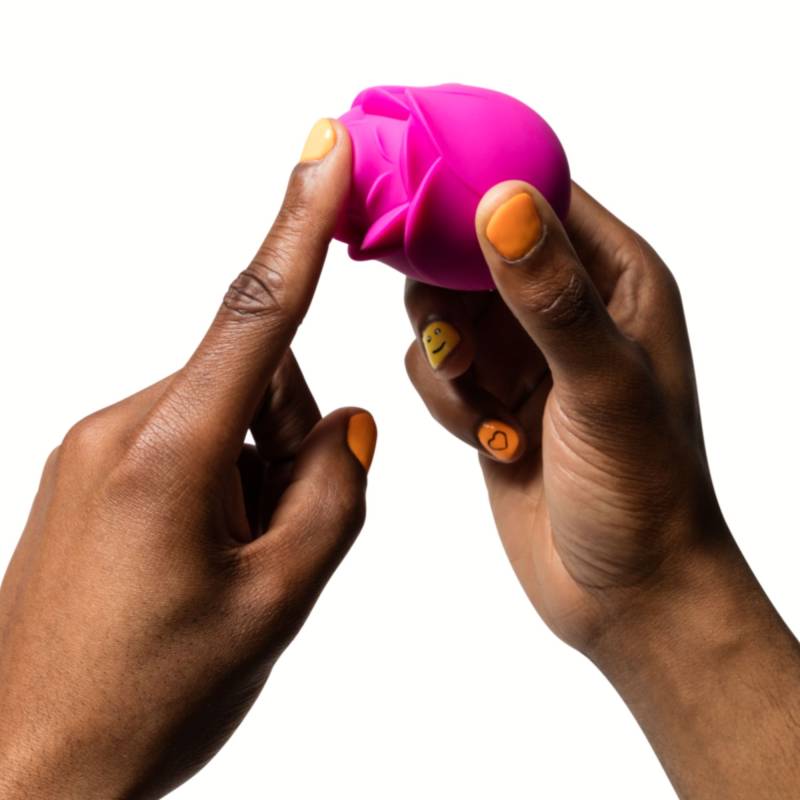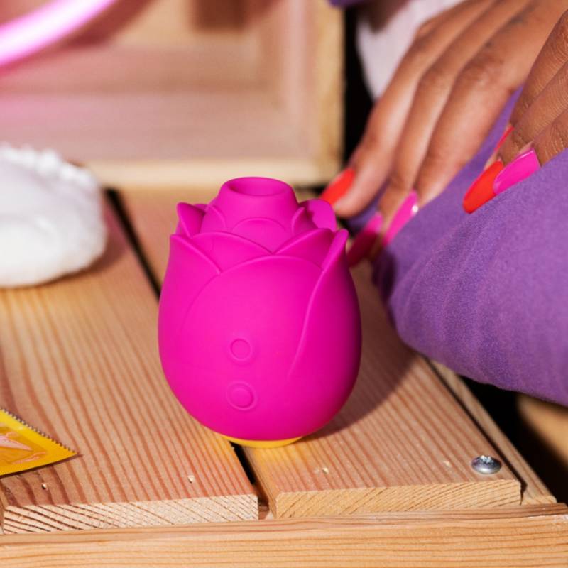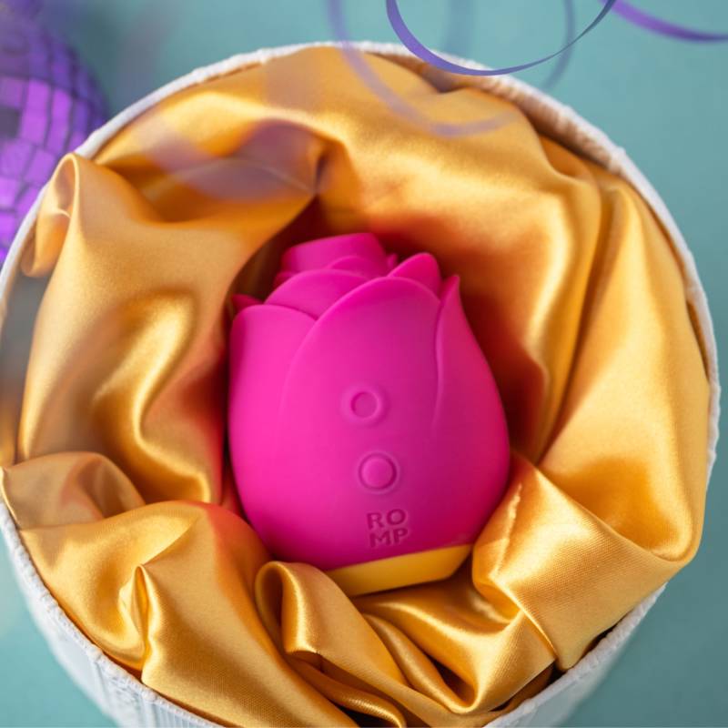 1. Halten Sie die Ein/Aus-Taste 2 Sekunden lang gedrückt, um ROMP Rose einzuschalten. Finden Sie Ihre Klitoris. Lassen Sie sie neue Empfindungen erleben!