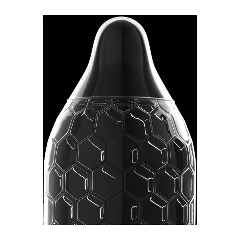 Diese von den Medien hochgelobte Innovation zeichnet sich durch die sechseckige Struktur aus, aus der das Kondom besteht. Diese symmetrischen Wabenformen bilden ein perfektes Mosaik, das es ermöglicht, gleichzeitig WIDERSTANDSFÄHIGKEIT, MINDERHEIT (0,045mm) und SENSATIONEN zu kombinieren!