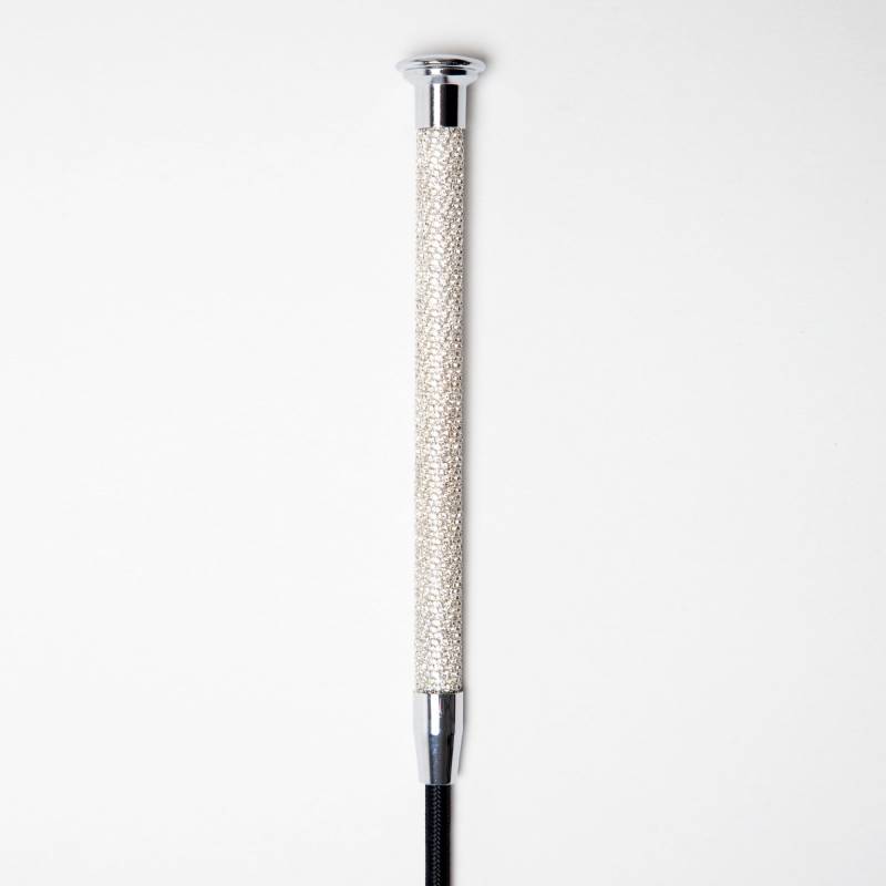 Eine kurze Gerte, die am Griff hübsch mit einer Vielzahl von silbernen und glitzernden Fäden verziert ist