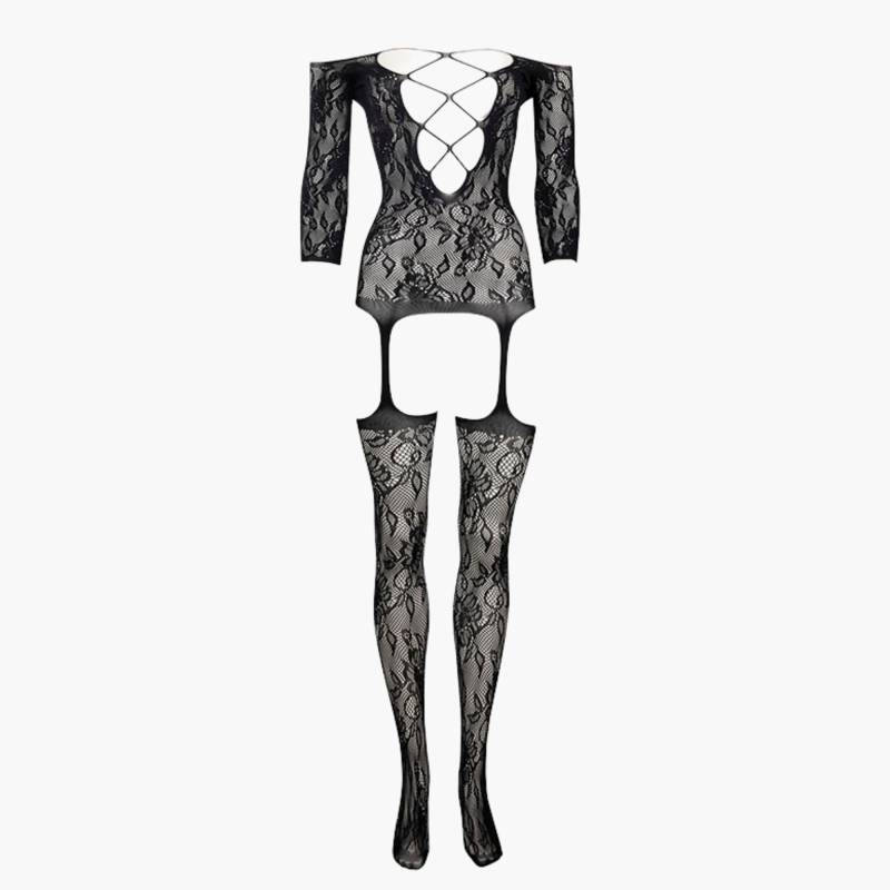 Langärmeliger Einteiler mit Spitzenmuster und offenem Schritt. Kann über die Schulter oder schulterfrei getragen werden. Der superdehnbare Stoff passt sich Ihrer Größe an.Erhältlich in verschiedenen Farben und 2 Größen.