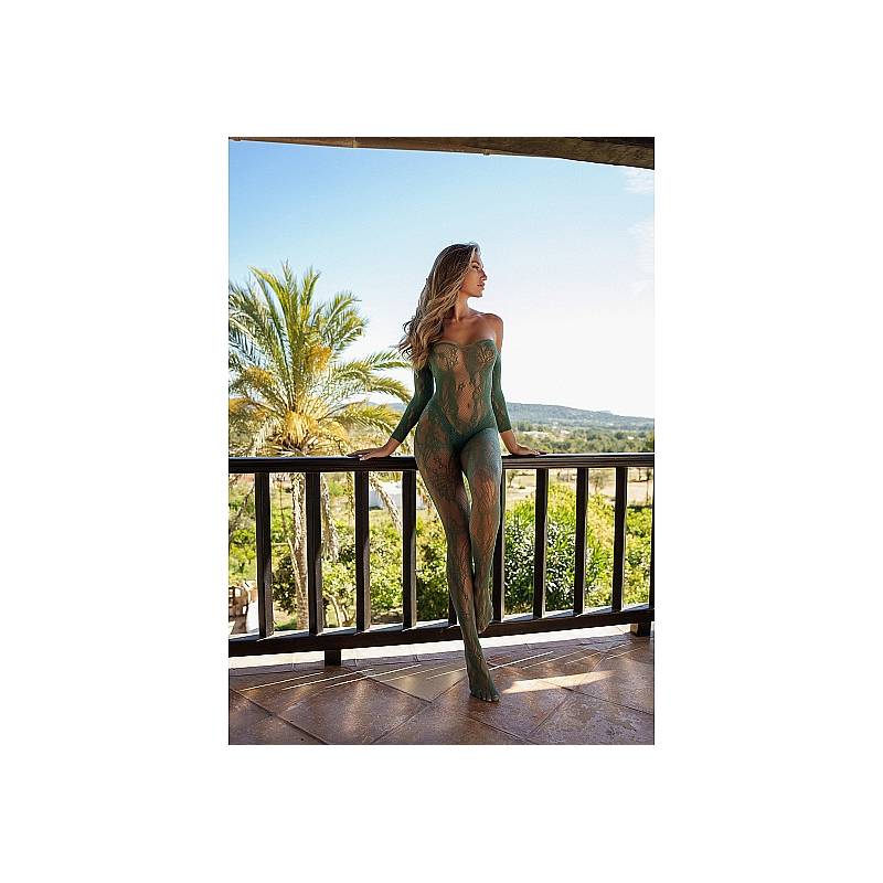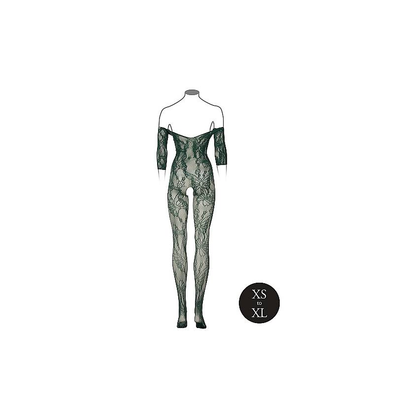 Langärmeliger Overall mit Spitzenmuster und offenem Schritt Kann über der Schulter oder mit freien Schultern getragen werden Der superdehnbare Stoff passt sich Ihrer Größe an Erhältlich in verschiedenen Farben und 2 Größen