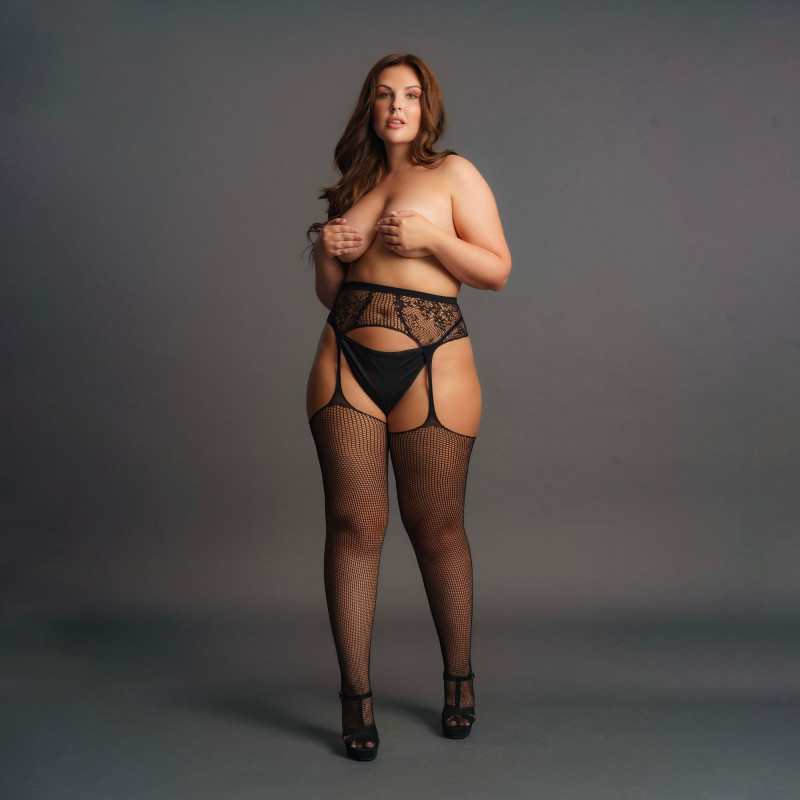 Tauchen Sie mit dieser Netz- und Spitzenstrumpfhose tief in eine Welt sinnlicher Eleganz und unausgesprochenen Verlangens ein. Sie wurde entwickelt, um Ihre Sinne zu fesseln und Ihnen eine neue Dimension der Leidenschaft zu eröffnen.