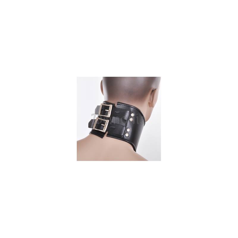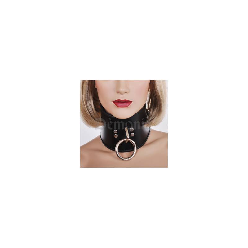 Halsband, das mit 2 verstellbaren Schnallen mit Vorhängeschloss geschlossen wird, vorne befindet sich ein großer Ring.