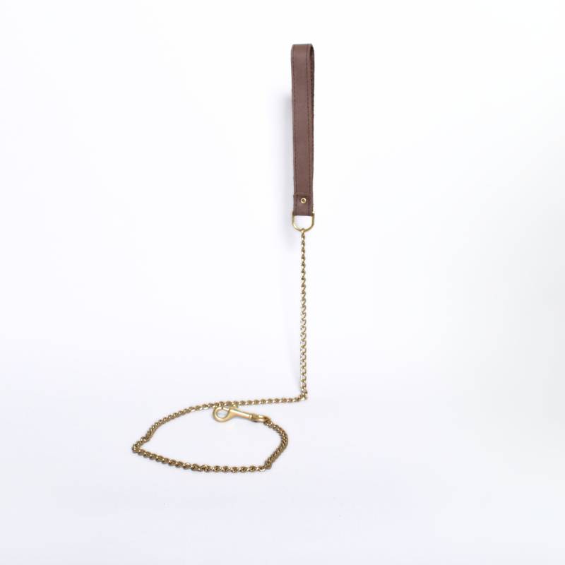 Verleihen Sie Ihren SM-Spielen einen Hauch von Charakter mit unserer weichen braunen Lederleine. Mit einer Gesamtlänge von 100 cm bietet diese Leine kontrollierte Bewegungsfreiheit für Szenarien der Dominanz und Unterwerfung.