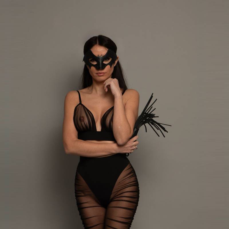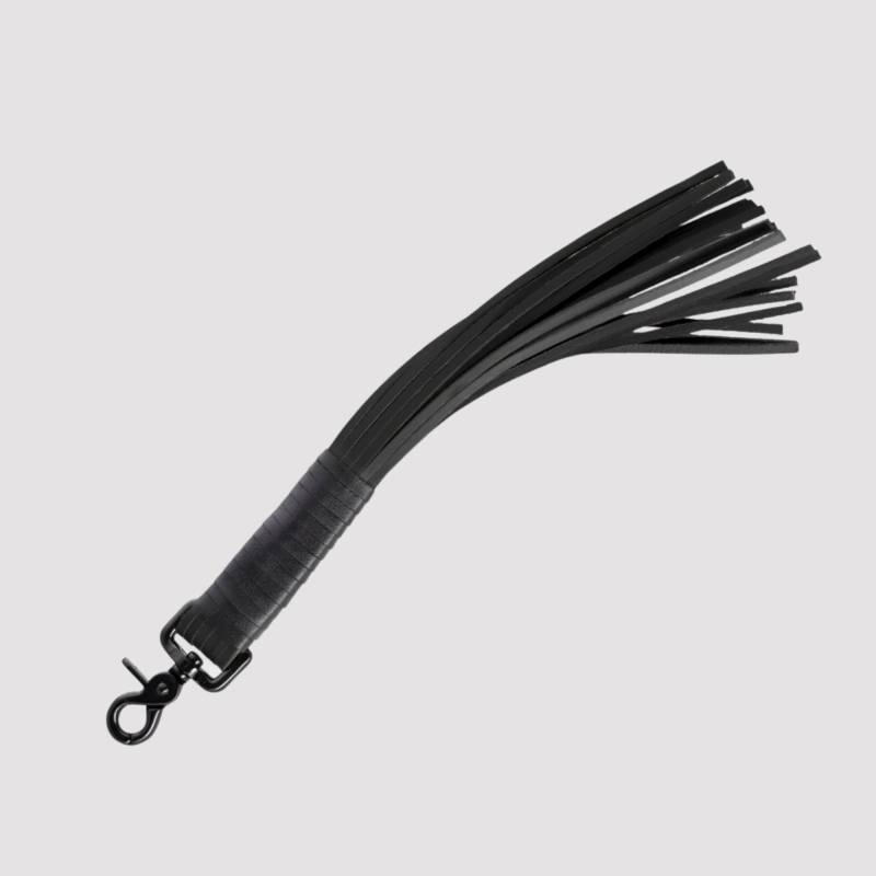 Die kurzen, steifen und stimulierenden Lederriemen sind sorgfältig um einen schwarzen Karabinerhaken gewickelt, so dass Sie Ihre Peitsche jederzeit griffbereit haben, ob auf der Straße, auf einer Party oder zu Hause.