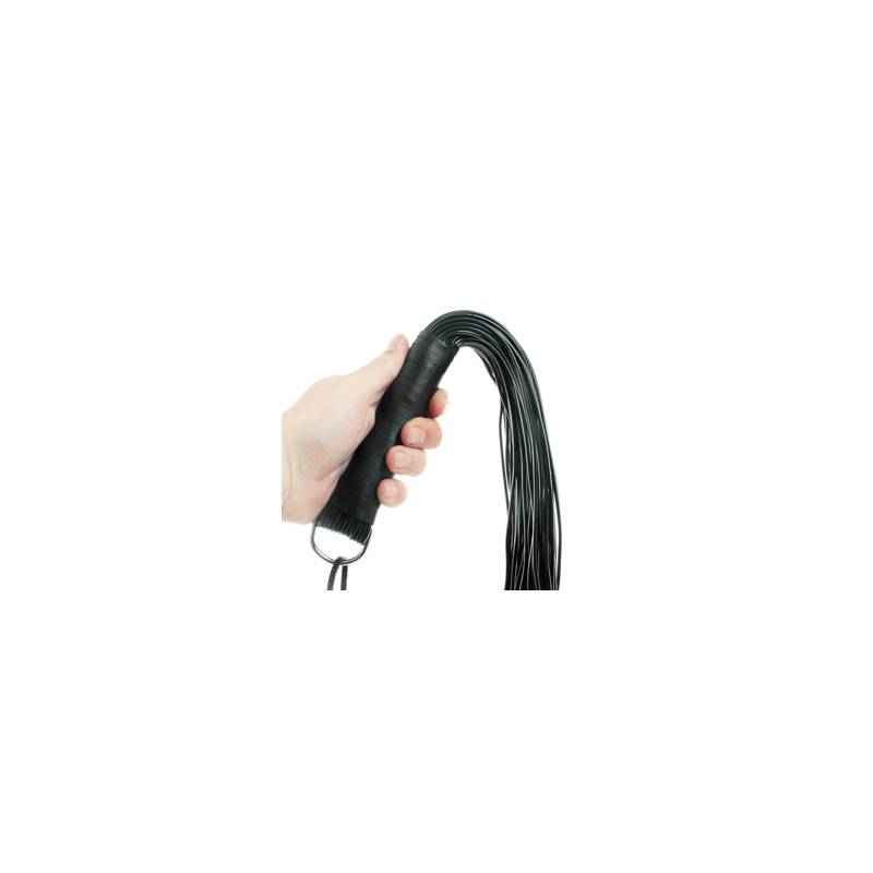 "Strenger" Holzhammer mit 72 runden, dünnen PVC-Riemen.