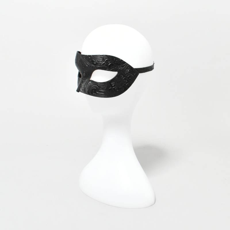 Geben Sie sich mit unserer schwarzen Ledermaske einer besonders aufregenden erotischen Erfahrung hin. Diese verführerische, venezianisch inspirierte Maske ist mit Arabeskenmustern verziert, die die Aufmerksamkeit auf sich ziehen. Ihre Befestigung mit einem Lederriemen bietet nicht nur eine perfekte Passform, sondern auch ein angenehmes Tragegefühl.