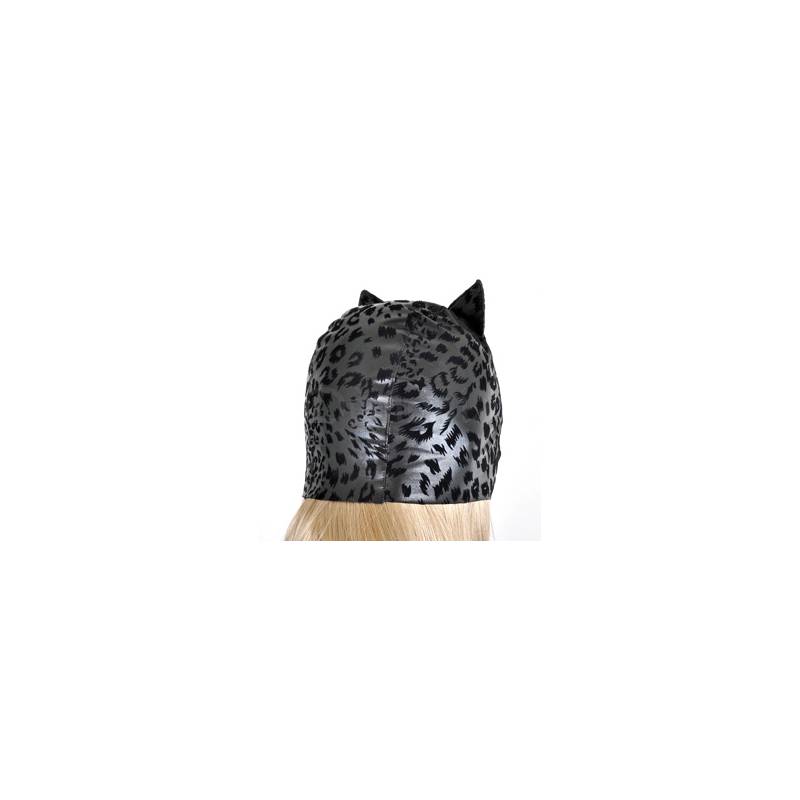 Catwoman-Maske aus lackiertem Lycra in Leopardenversion, entworfen von Patrice Catanzaro.