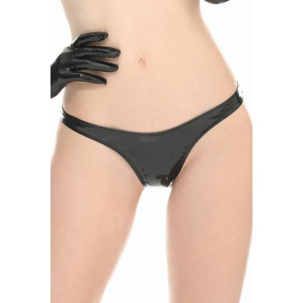 String aus rotem Vinyl von Patrice Catanzaro. Niedrige Taille und tief ausgeschnitten. Sie können ihn mit dem SAM BH kombinieren.