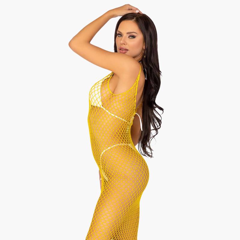 Entdecken Sie dieses umwerfende Netzkleid, das Sie unbedingt in Ihre Garderobe aufnehmen sollten. Mit seinem eleganten Rückenausschnitt ist es ideal, um es mit verführerischen Dessous für einen besonderen Abend oder einfach zu Hause zu tragen, um sich glamourös zu fühlen. Darüber hinaus kann dieses vielseitige Kleid an sonnigen Tagen auch als Strandkleid getragen werden.