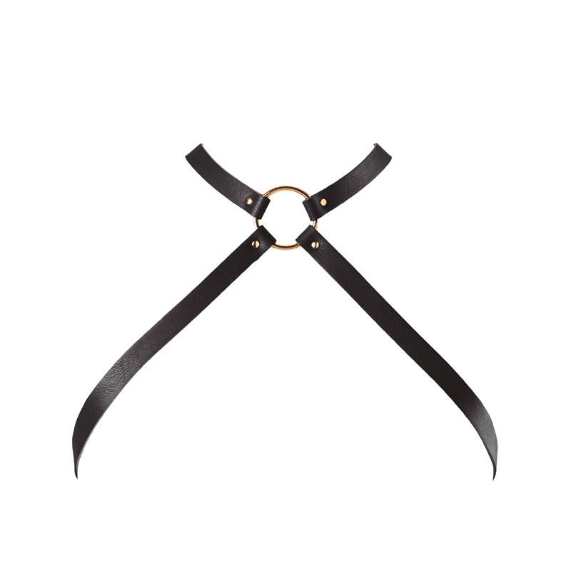 Schwarzes Kreuzgeschirr für die Brust "MAZE" by Bijoux Indiscrets. Dieses Kreuzgeschirr mit einem schönen zentralen Metallring, der sich oberhalb der Brust befindet, wird Ihren Busen betonen. Tragen Sie es mit Ihren schönsten Dessous oder direkt auf der Haut!