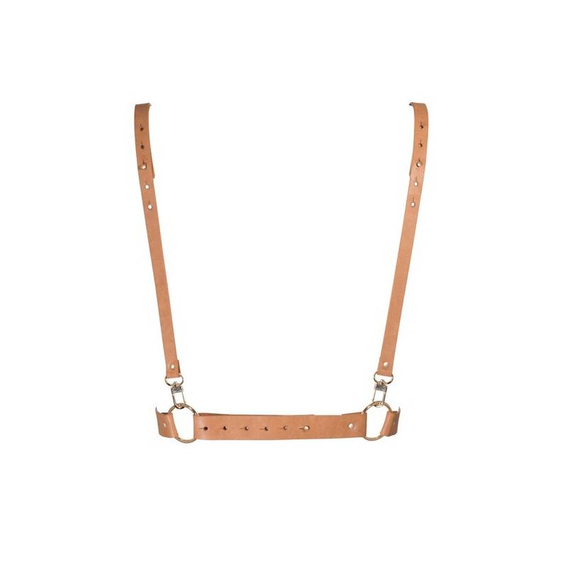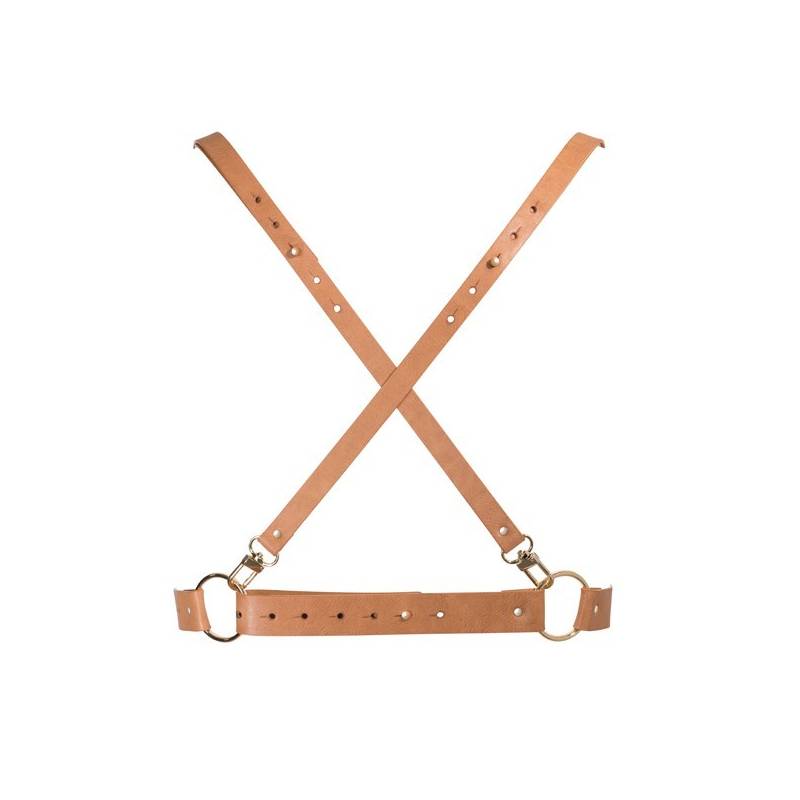 Sie können je nach Lust und Laune die Riemen dieses Geschirrs kreuzen oder lösen (auf dem Rücken), wobei diskrete Karabinerhaken auf der Rückseite angebracht sind.