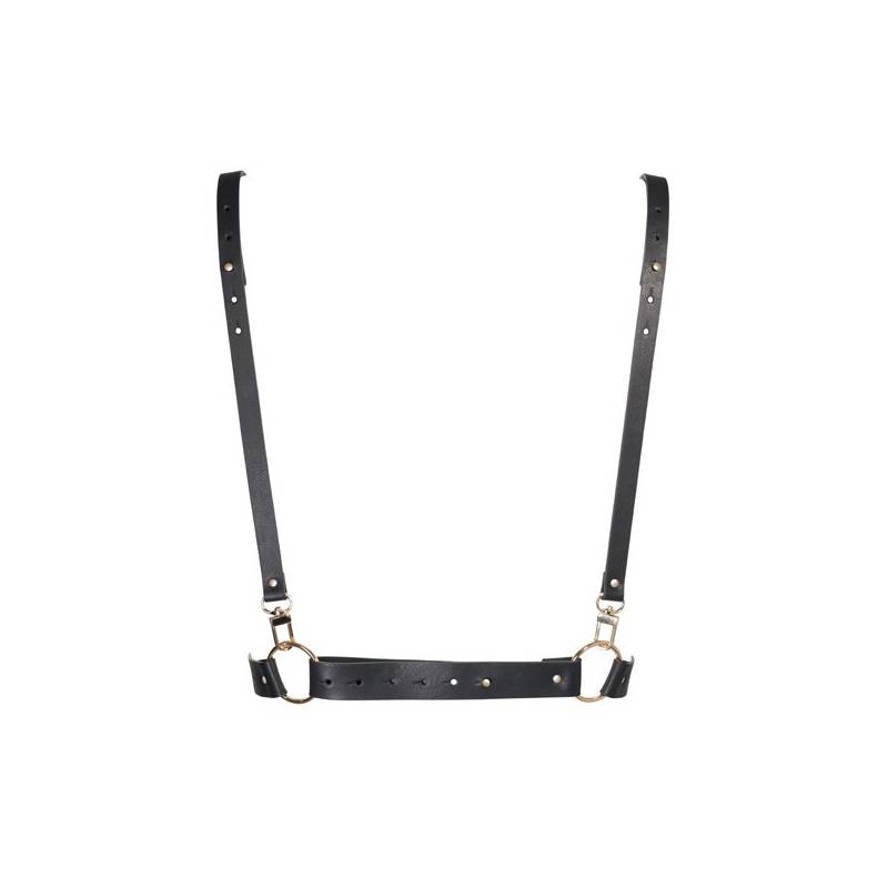 Sie können je nach Lust und Laune die Riemen dieses Geschirrs kreuzen oder lösen (auf dem Rücken), wobei diskrete Karabinerhaken auf der Rückseite angebracht sind.
