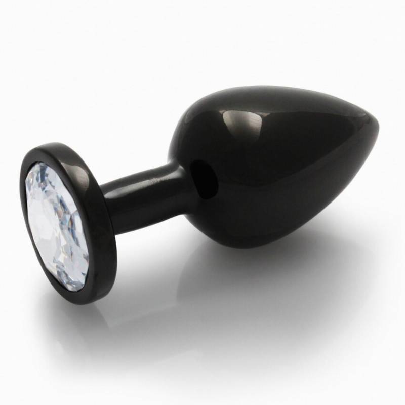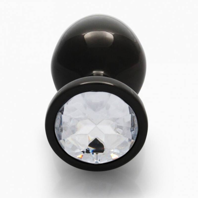 Schwarzer Metallplug mit Strasssteinen und Diamanten.