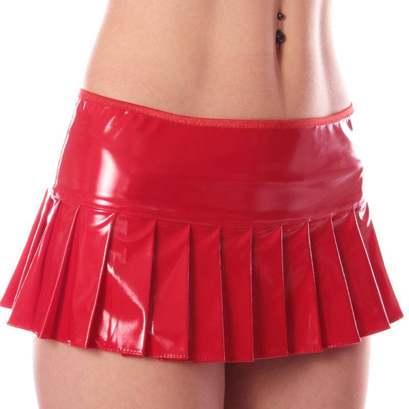 Mikrofaltenrock aus rotem Vinyl.