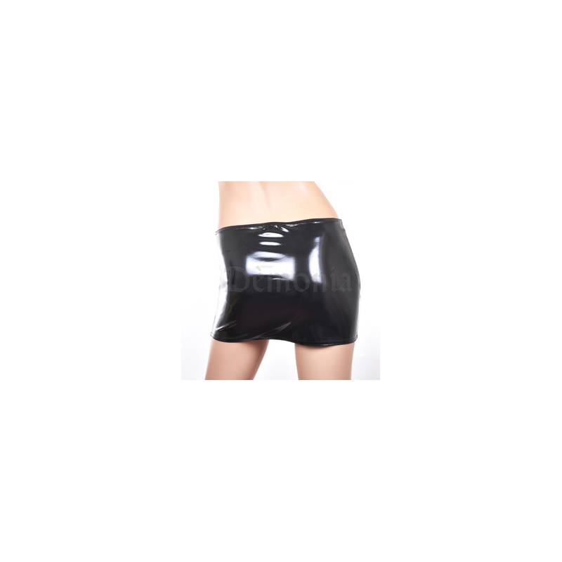 Schwarzer Vinyl-Minirock mit zwei kleinen Schlitzen vorne