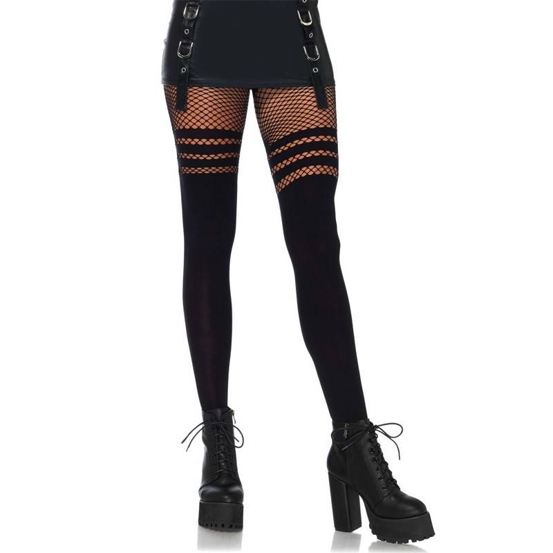 Nahtlose, blickdichte Strumpfhose mit gestreiftem Netz am Oberschenkel.