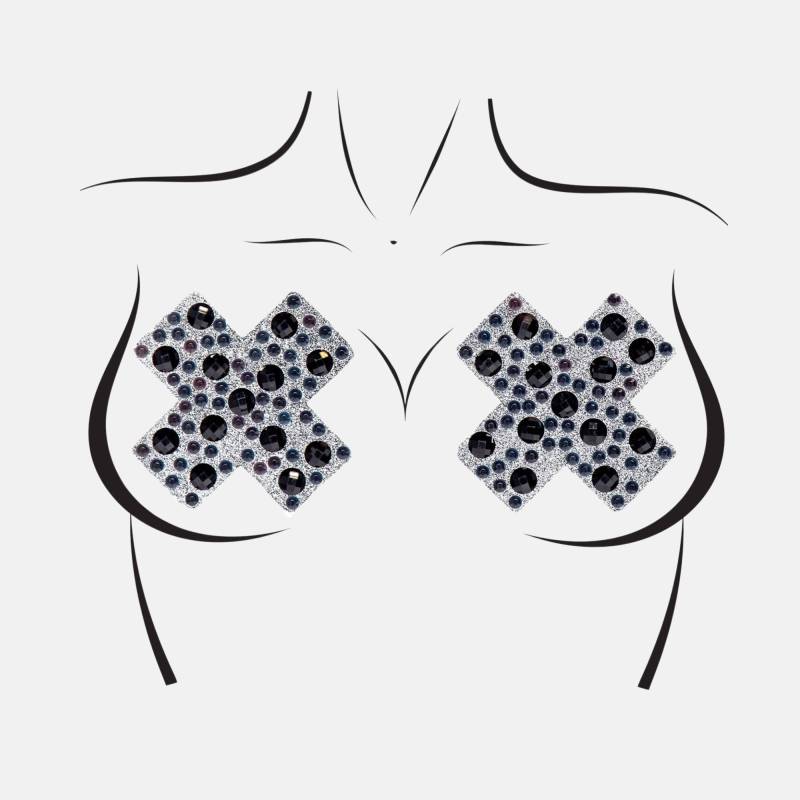 Zeigen Sie Ihre sinnliche Seite mit diesen einzigartigen Nippies, die die Kühnheit der X-Form mit dem verführerischen Glanz der Strasssteine kombinieren und Ihrem Stil eine glamouröse und geheimnisvolle Dimension verleihen.