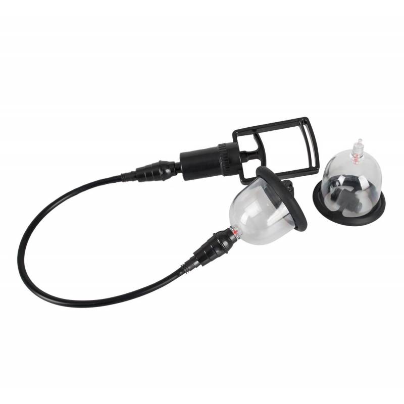 Diese Nippelcups sind mit einer Handpumpe ausgestattet, um ein Vakuum zu erzeugen. Der Schlauch kann entfernt werden, so dass nur der Saugnapf auf den Brüsten verbleibt, sobald das Vakuum erzeugt wurde.