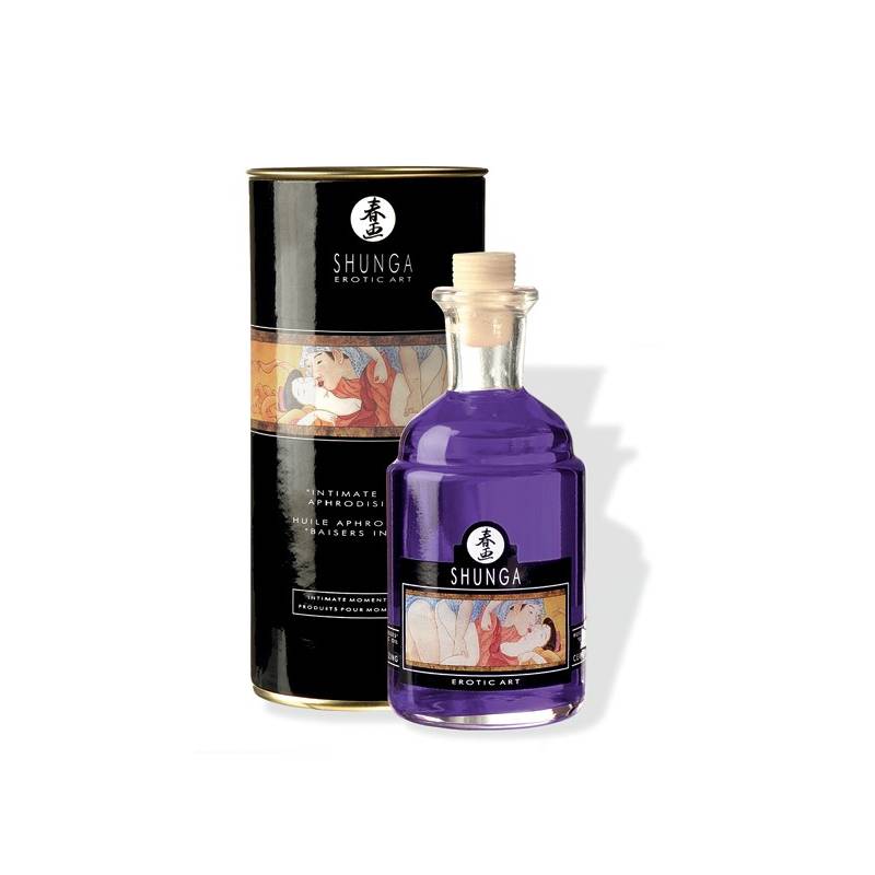 um den Genuss der Empfindungen an den erogenen Zonen zu verstärken tragen Sie eine kleine Menge des Öls auf die gewünschte Region auf, indem Sie es sanft einreiben, dann blasen Sie sanft, um die stimulierende Wärme des Öls zu aktivieren.